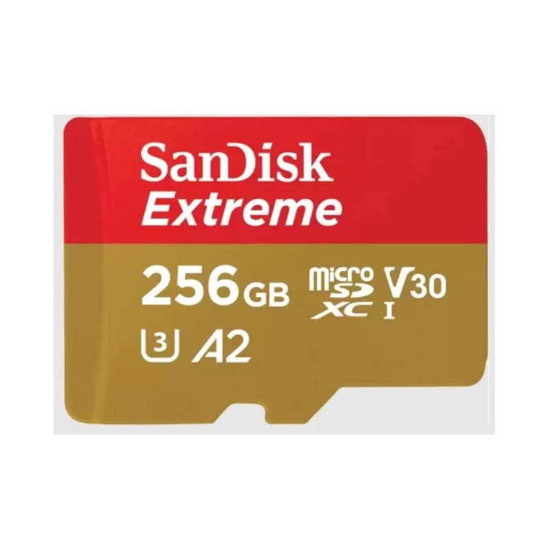 MicroSDXC, rychlost při zápisu 130 MB/s, rychlost při čtení 190 MB/s, SD adaptér, kapacita karty 256 GB