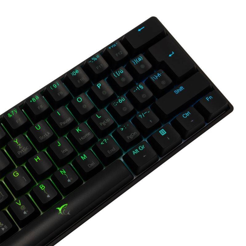 White Shark SHINOBI představuje výkonnou herní 60% klávesnici s duhovým podsvícením, stylovým černým provedením a připojením skrze opletený USB kabel. Kvalitně zpracované tělo dává klávesnici vysokou odolnost a jistotu při hraní. Protiskluzové nožky s nastavitelným zdvihem vám pomohou při hledání ideální výškové polohy. Odnímatelný USB-C/USB kabel o délce 1,8 metru vám poskytne dostatek prostoru pro připojení klávesnice a umístění na vaše ideální herní místo.