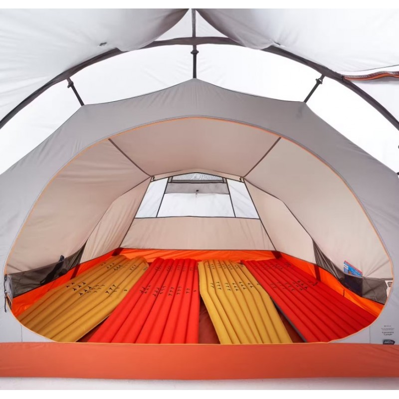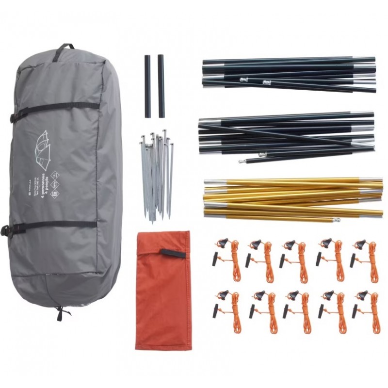 Ultralehký a skladný tunelový stan na treking v horách pro čtyři osoby.