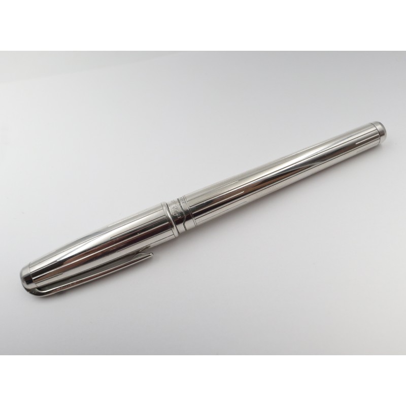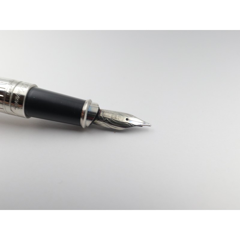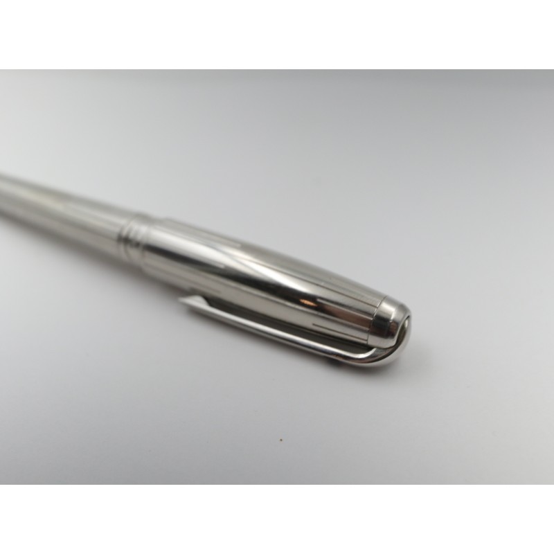 Povrchová úprava: Pero má stříbrný (pravděpodobně postříbřený nebo palliový) povrch s vertikálním gravírováním (tzv. godron vzor).