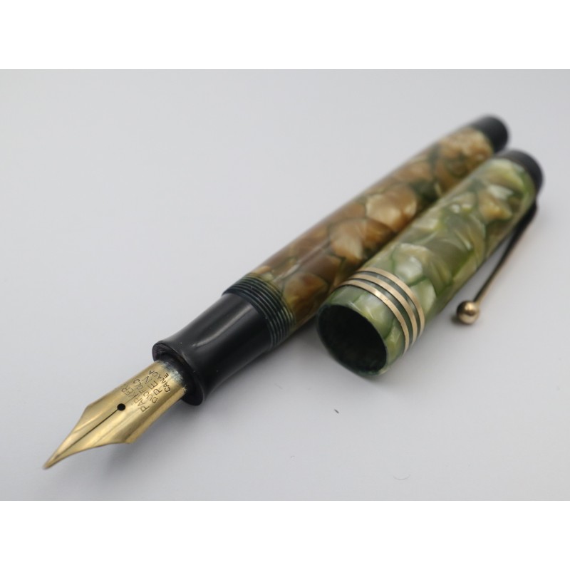Krásný exemplář historického plnicího pera značky Parker, konkrétně model z legendární řady Duofold. Jedná o verzi vyrobenou v Kanadě, z přelomu 20. a 30. let 20. století.