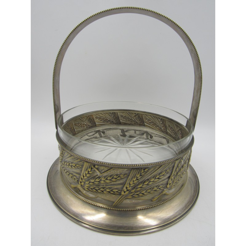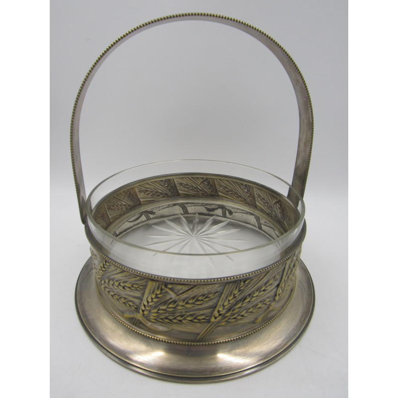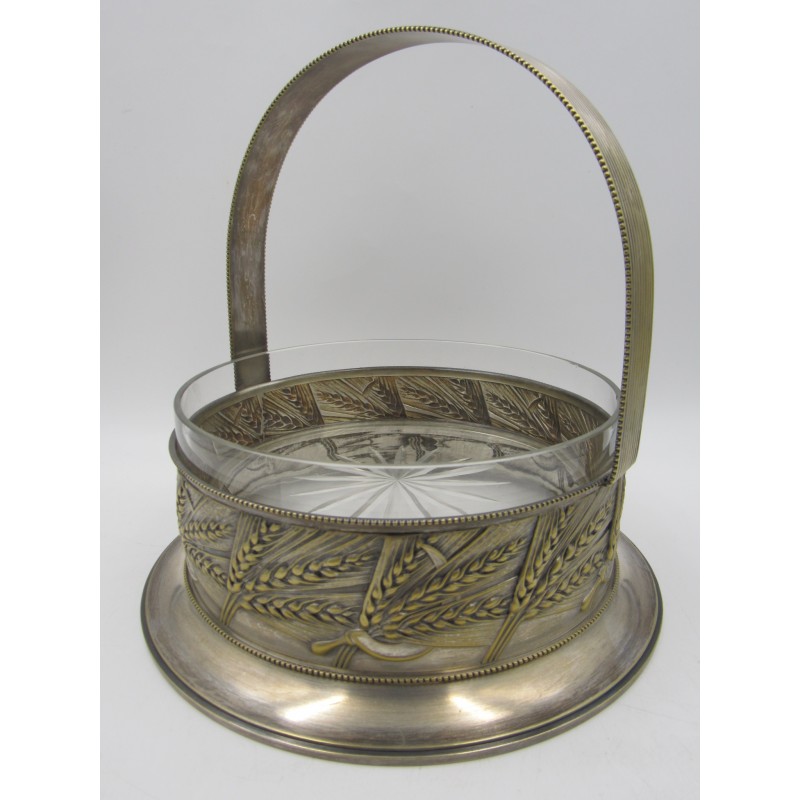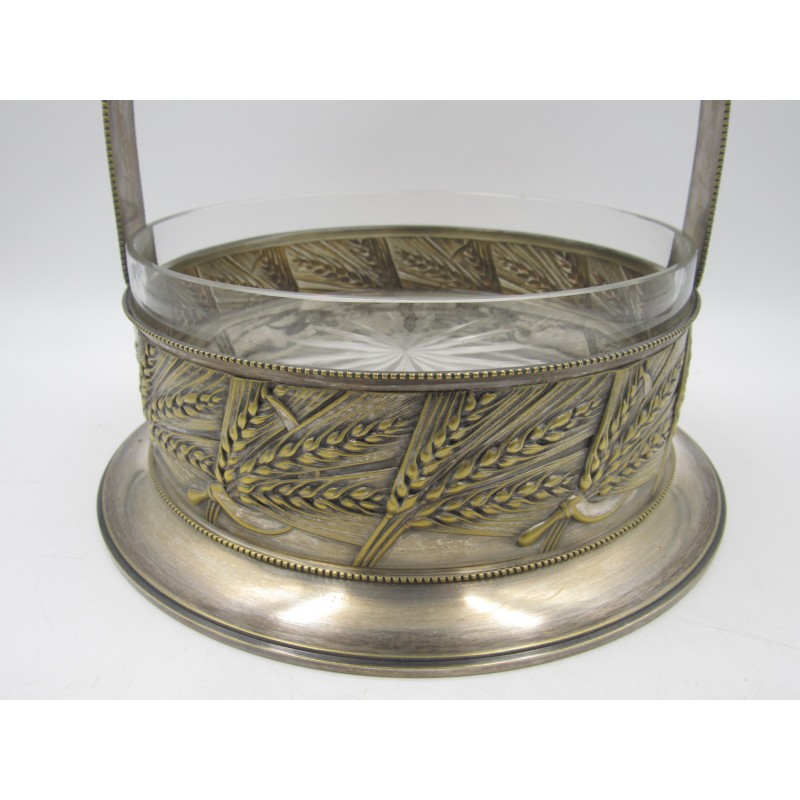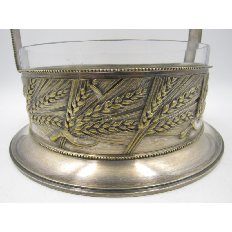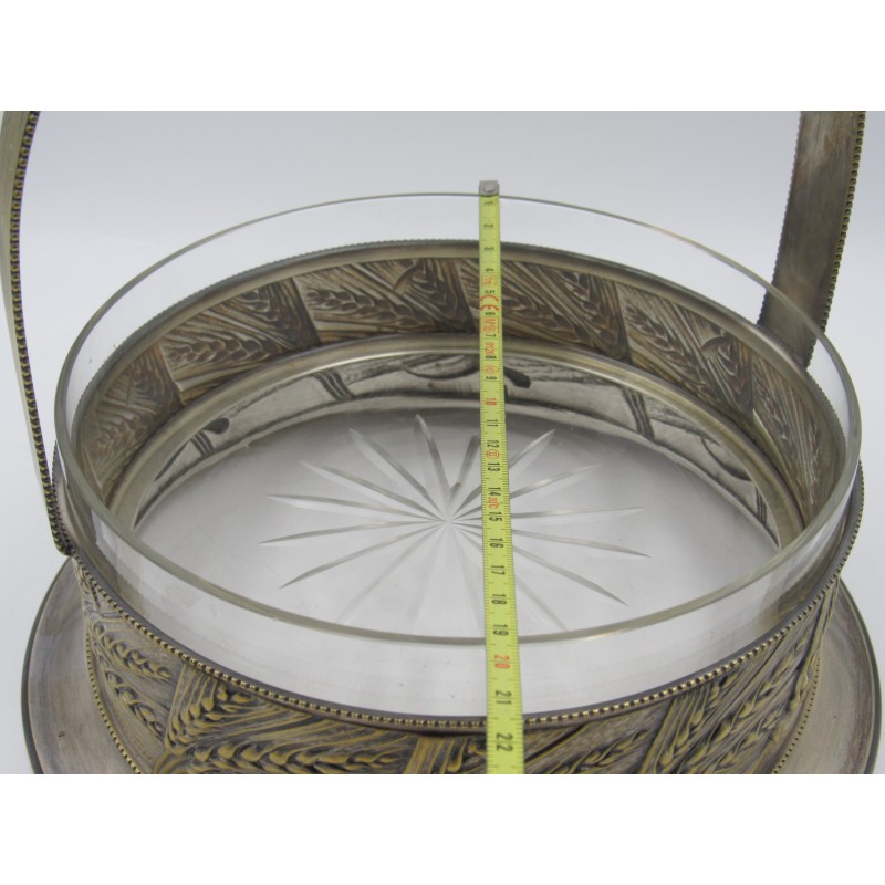 Starožitný alpakový nástolec s skleněnou miskou