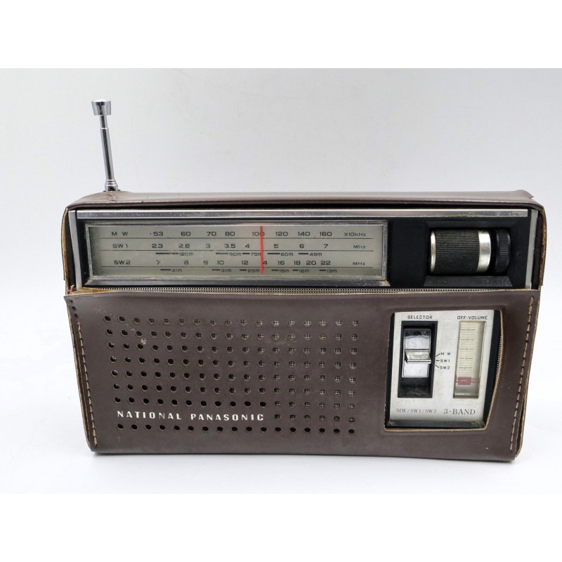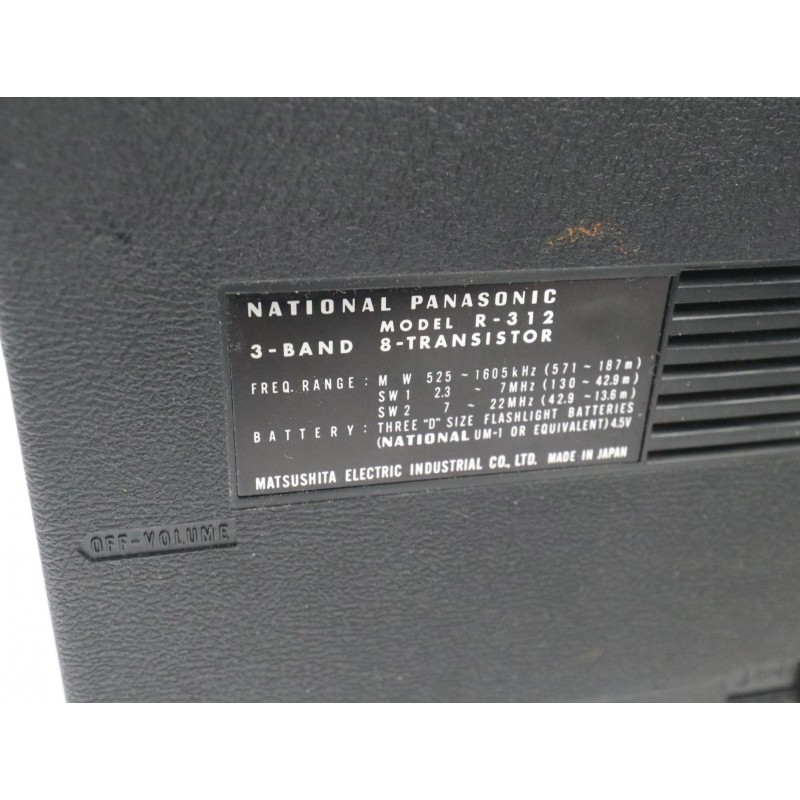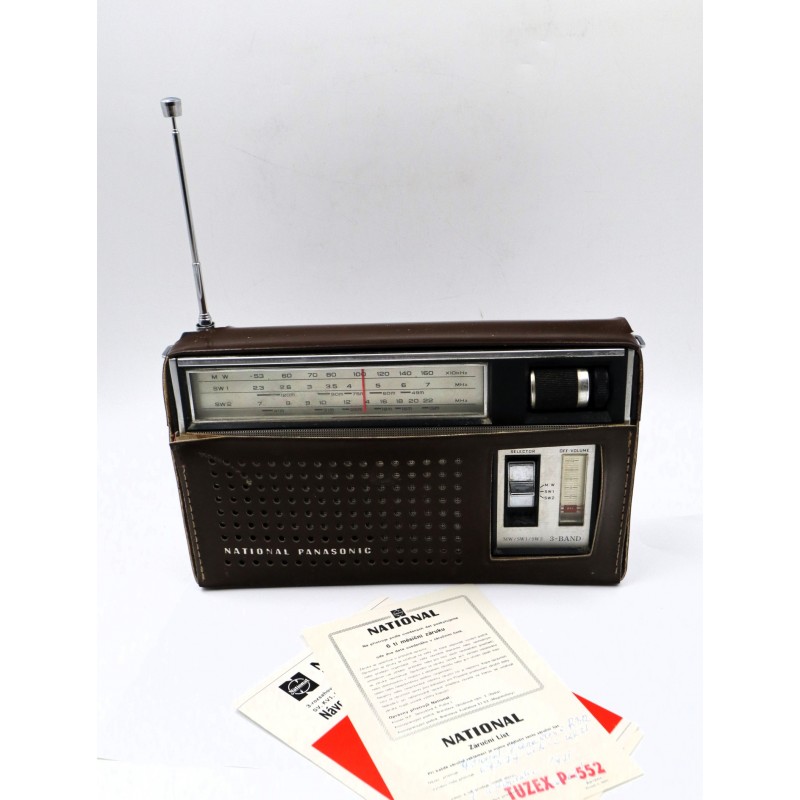 Přenosné tranzistorové rádio National Panasonic, model R-312, vyrobené v Japonsku firmou Matsushita Electric Industrial Co., Ltd.