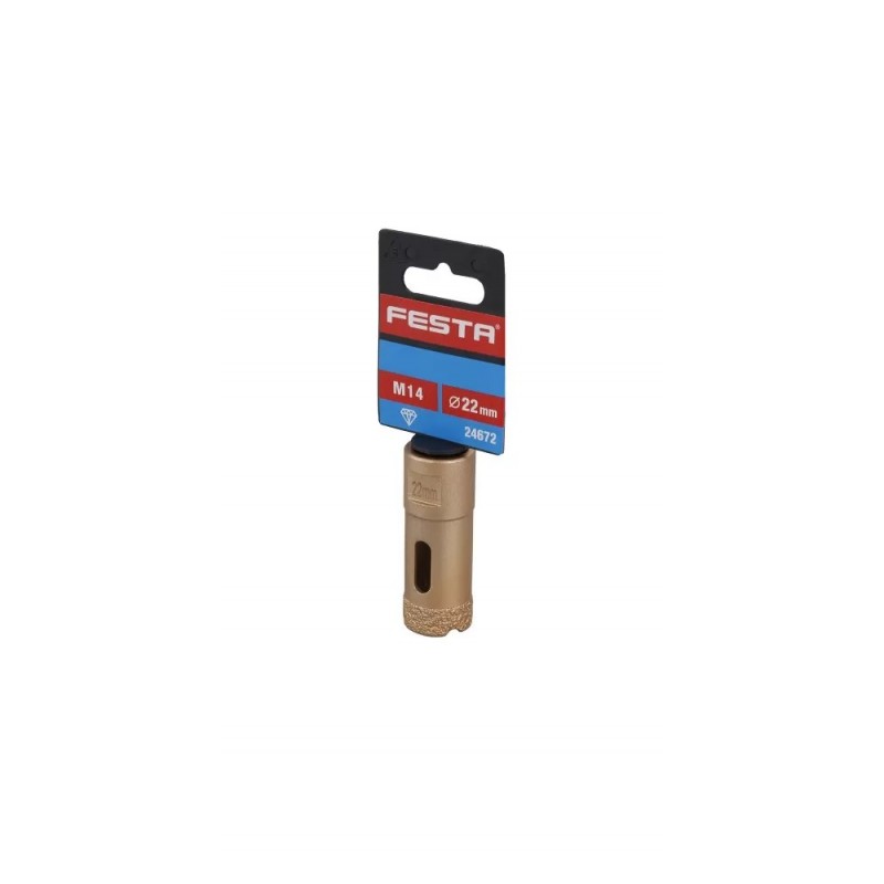 Korunka vykružovací FESTA diamantová 22mm M14 je profesionální diamantová korunka se závitem M14, určená pro úhlové brusky.