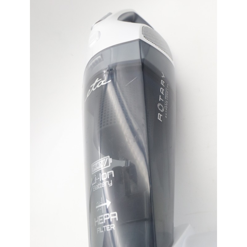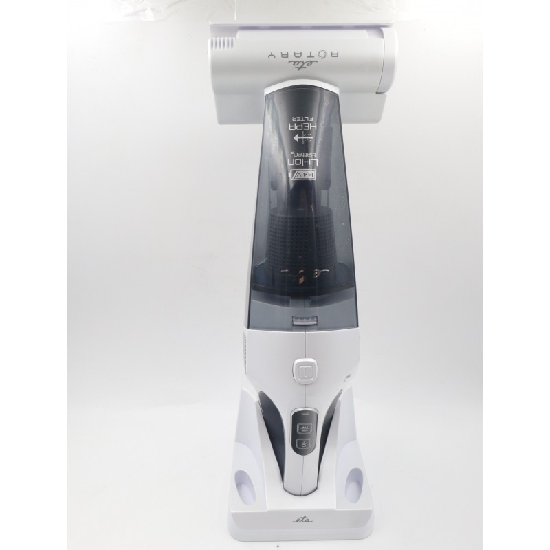 Usnadněte si úklid domácnosti s praktickým ručním vysavačem nové generace ETA Rotary! Nadchne vás silným sacím výkonem i elektrickým rotačním kartáčem, který zajistí ještě efektivnější sběr a vyčesání nečistot. Kvalitní 14,4 V Li-ion akumulátor vám umožní až 25 minut nepřetržitého vysávání a následně se znovu plně nabije za pouhých 5 hodin. Díky nízké hmotnosti, malým rozměrům a ergonomicky tvarované rukojeti se navíc s tímto příručním pomocníkem příjemně manipuluje. Tlačítko ON/OFF lze aretovat ve zvolené poloze, a tak ho nemusíte po celou dobu vysávání mačkat. Sesbíraný prach a nečistoty putují přímo do transparentní nádobky o objemu 400 ml, která vás zbaví nutnosti nákupu a výměny prachových sáčků. O filtraci se postará účinný HEPA filtr.