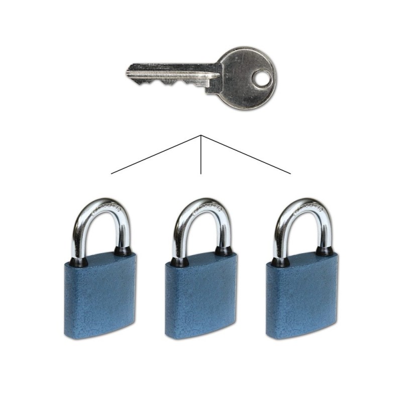 Zabezpečte si své věci pomocí sady 3 litinových visacích zámků Richter. Uzamknete je bez klíče. Stačí zatlačit a zacvaknout třmen. Ten je jištěný ve 2 bodech, proto je odolnější vůči pokusům o otevření zámku silou. Vložka je vybavená 5 odpruženými stavítky. Překoná je správně tvarovaný klíč, kterým zámek odemknete. Navíc máte možnost vytvořit systém z těchto zámků. Jedním klíčem totiž otevřete všechny.