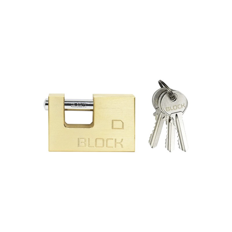 Mosazný visací zámek RV.BLOCK.70 s kartáčovaným povrchem.
